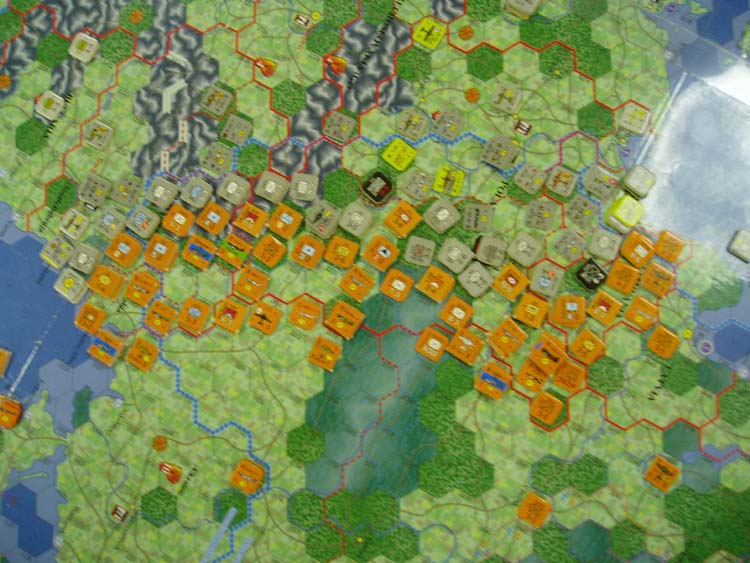 J/A '42 Crisis in the East: At the end of J/A the Germans have almost completely withdrawn from Russia, note the almost complete absence of troops in the center.
